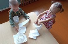 Воспитанники младший группы познакомились с историей создания бумажных салфеток. Сделали вывод, что без салфетки невозможно соблюсти чистоту и порядок за столом. Но еще можно сделать красивые цветы, сегодня мы С младший группой попробовали сделать цветы из бумажных салфеток