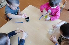 Работая по модулю сенсорика в младший группе провели эксперимент с водой "Окрашивание воды ". Целью которого было : Познакомить детей со свойствами воды, дать детям понятия о важности воды в жизни людей и животных. Формировать естественные научные представления у дошкольников, путем проведения опытов.. С помощью пищивых красок дети младший группы окрашивали воду, смотрели как вода меняет цвет.
