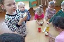 22 марта отмечается "День воды". В младший и в средне-подготовительной группе провели эксперимент с окрашиванием воды и с капустными листками. Дети окрашивали воду с помощью пищевых красок, и опускали в в окрашенную воду листки капусты. Через некоторое время листки капусты окрасились в разные цвета. Формирование у детей осознанного, бережного отношения к воде, воспитание экологического сознания, представления о необходимости сохранения окружающей природы в экологическом равновесии.