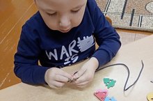 Работая в рамках по модулю Сенсорика в младший группе играли игру "Собери бусы"