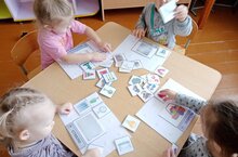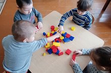 В младшей группе играли игру "сортировка". Где дети сортировали по цвету