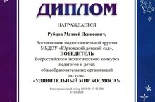 Во всероссийском экологическом конкурсе педагогов и детей по теме "Удивительный мир космоса" приняли участие Нигматуллина Айзиля и Рубцов Матвей где стали победителями 17.01.2023