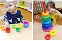 в рамках реализации программы воспитанников и обучающихся Мензелинского муниципального района на 2022-2024 годы «Стремлени в будущее»- «Килэчэккэ омтылыш» по модулю «Сенсорика» 8.11.2022 года в младшей группе играли игру «Собери пирамидку». Целью которой было научить детей собирать пирамидку по цвету, по образцу.