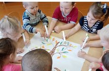 Коллективность процесса. Рисование позволяет разделить творческий процесс с другими детьми. При этом, малыши с большим удовольствием включаются в совместный процесс. Рисование с другими детьми позволяют ребенку развивать мышление, интеллект, организованность. А участие взрослого помогает направить творчество в правильное русло, грамотно распределить обязанности.