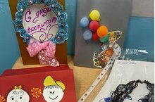 Воспитанники средней , старшей и подготовительной группы вместе с родителями создали открытки на День Воспитателя .