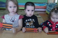 Формировать чувство гордости за свою страну, благодарность ветеранам.Образовательные :сформировать представление о наградах времен ВОВ, символах.Воспитательные :воспитывать уважение к современным российским войскам, желание защищать свою Родину.Развивающие: развивать у детей деятельное участие в акциях памяти, развитие мелкой моторики.Материал: Георгиевская ленточка, фотографии наград времен ВОВ, образец работы,цветная бумага, клей,салфетки, заготовки элеметов из цветной бумаги.