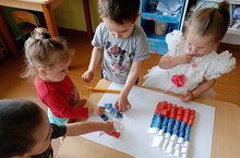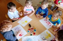 В детском саду провели занятие на тему «Праздник красок». С детьми раскрашивали ладошки, оставляли опечатки на листочках бумаги. Дети с удовольствием занимались, отгадывали какие краски у нас есть.