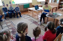 В рамках всероссийской акции «Наши истоки. Читаем фольклор». Библиотекарь рассказал дошкольникам о различных жанрах народного творчества: песнях, потешках, пословицах и поговорках, загадках, скороговорках и дразнилках. Дети задорно произносили скороговорки, учили дразнилки.