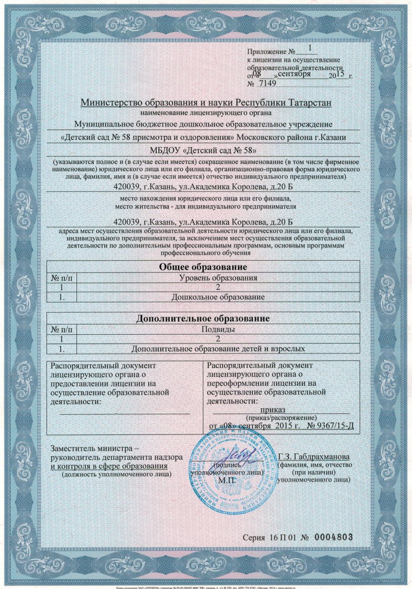 | E-Mail: | Ds58.kzn@tatar.ru |