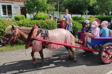 Сегодня наши воспитанники катались на пони и имели возможность потрогать и покормить милое животное.