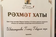 «Мәгариф» журналы «Моңлы саз чыңнары» бәйгесендә җиңгән укытучыларны бүләкләде. Февраль аенда «Мәгариф» журналы бөек татар шагыйре Габдулла Тукайның тормыш юлына һәм иҗатына багышланган «Моңлы саз чыңнары» сыйныфтан тыш чаралар сценарийлары һәм дәрес эшкәртмәләре конкурсы игълан иткән иде. Тукайга, аның иҗатына карата балаларда горурлык, хөрмәт хисе булдыру, шагыйрьнең шигырьләре ярдәмендә туган телгә мәхәббәт тәрбияләү максатларын күздә тотып үткәрелгән конкурска йөздән артык эш килде. Әйтергә кирәк, бу юлы да республикабызның төрле районнарында хезмәт куючы укытучыларыбыз, тәрбияче, китапханәчеләр актив катнашты. Актаныш, Әтнә, Кукмара, Мамадыш, Лаеш, Казаннан катнашучылар саны күпчелекне тәшкил итте. Шайхетдинова Гөлназ Габдулла кызы конкурста актив катнашканы өчен РӘХМӘТ ХАТЫ белән бүләкләнде.