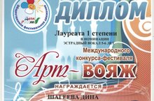 Наша воспитанница Шагеева Дина и музыкальный руководитель Петрова Ирина Руслановна приняли участие в Международном конкурсе-фестивале "Арт-Вояж" и удостоились 1 места! Поздравляем!