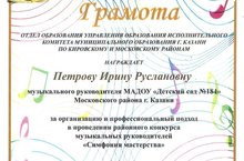 Наш музыкальный руководитель 1 кв.кат. Петрова Ирина Руслановна приняла участие в работе жюри районного профессионального конкурса музыкальных руководителей "Симфония мастерства".