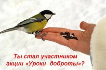 В детском саду проходит акция “Уроки доброты”. Нужно поддержать птиц зимой, сделать для них кормушки и не забывать подсыпать в них корм. Самодельная кормушка – обязательный элемент участия в акции. Сделать такую простую кормушку для птиц под силу каждому. Участники акции получают раскраски птиц, которую дети с удовольствием раскрашивают.