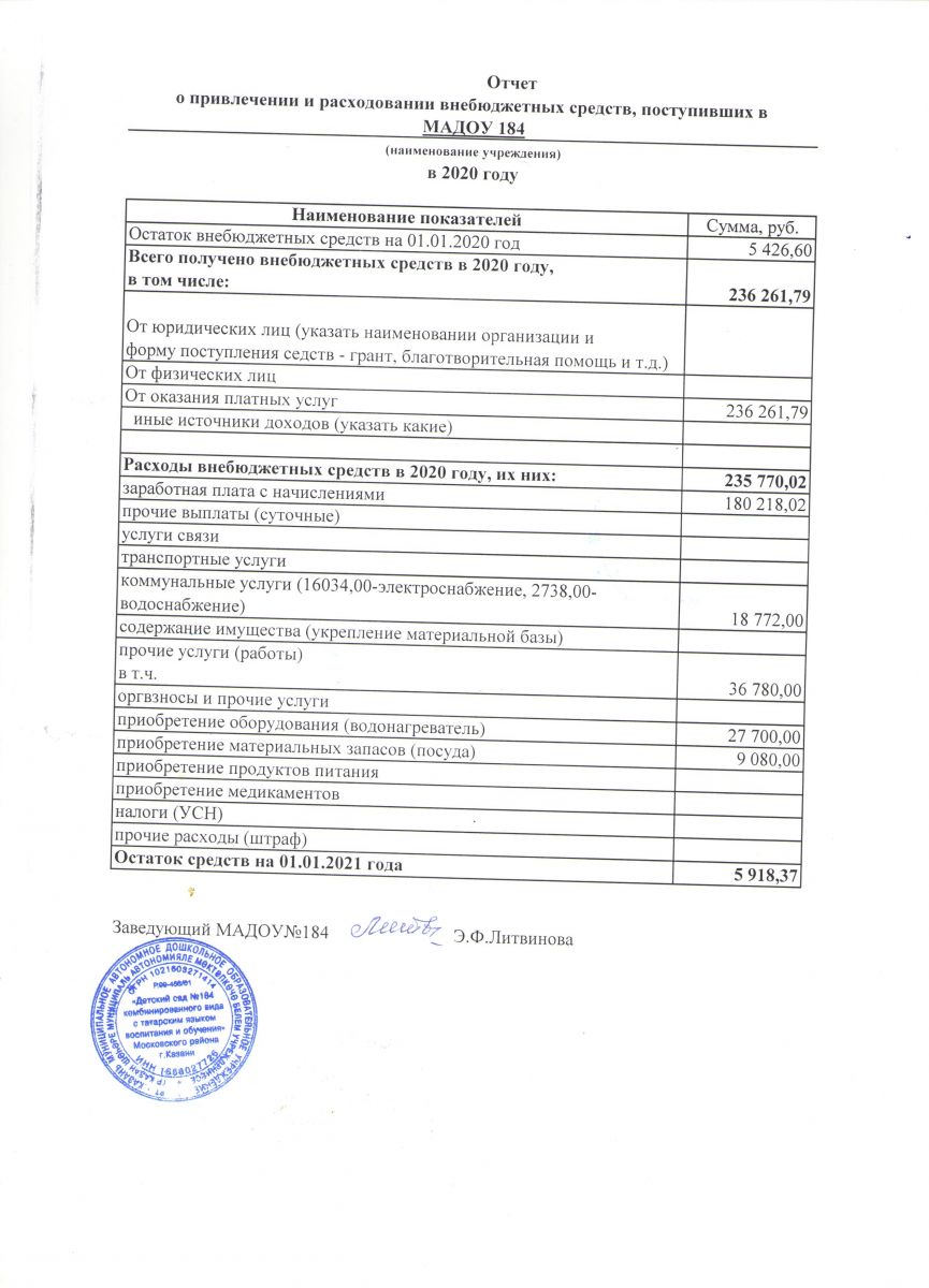 Отчет о привлечении и расходовании внебюджетных средств за 2020