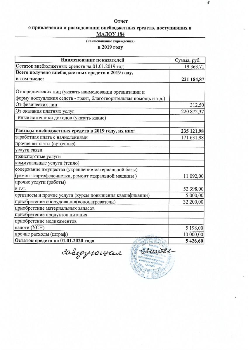 Отчет о привлечении и расходовании внебюджетных средств за 2019