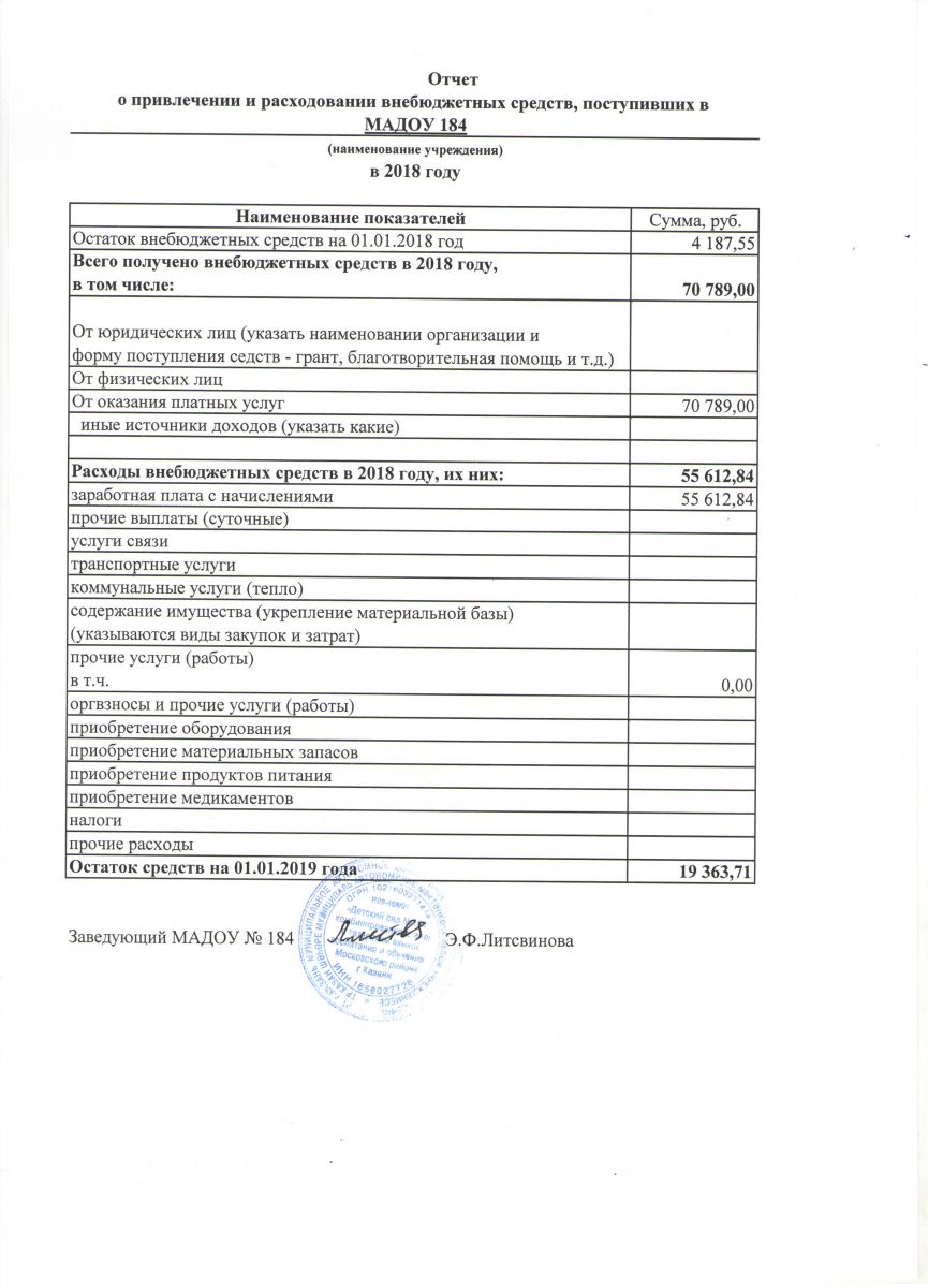 Отчет о привлечении и расходовании внебюджетных средств за 2018