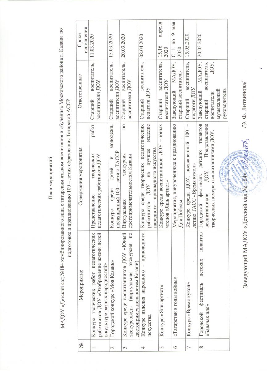 План мероприятий МАДОУ по подготовке и празднованию 100 - летия образования ТАССР