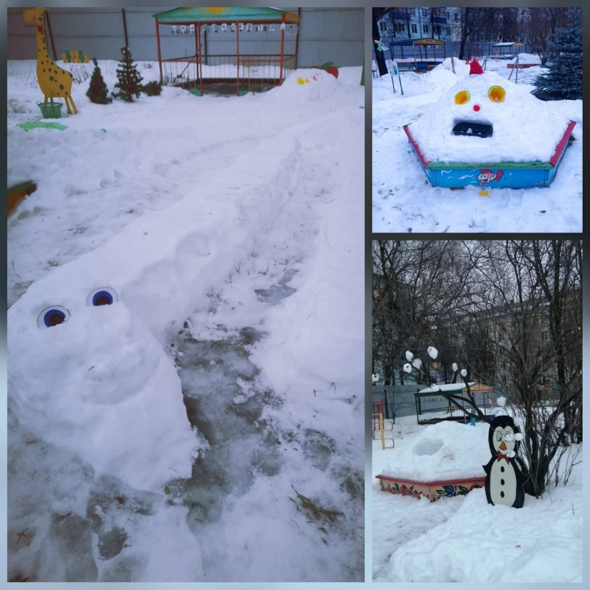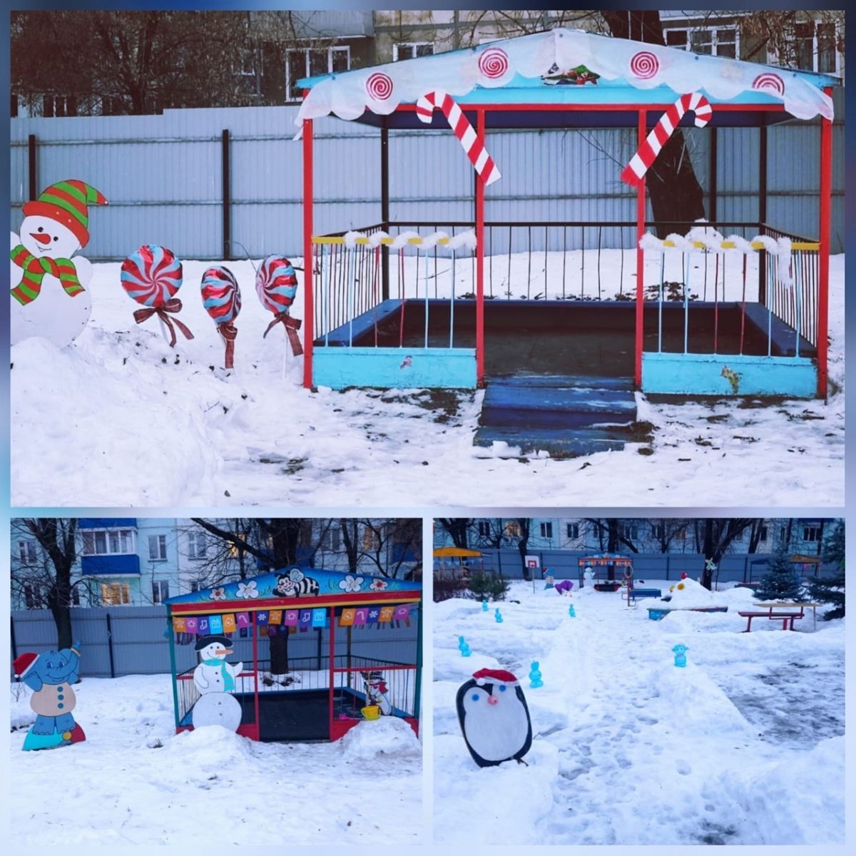 У нас ежегодно проходит смотр-конкурс «Зимняя сказка», где каждый участок детского сада становится необыкновенным: персонажи из детских сказок, животные, горки для катания, лабиринты способствуют повышению двигательной активности детей, обогащают зимнюю прогулку.