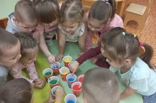 В младшей группе 6 ребята провели эксперимент "Волшебная вода". В ходе эксперимента дети познакомились со свойствами воды (прозрачная,непрозрачная,цветная-бесцветная) и закрепили знания цветов (зеленый,желтый,синий,красный)