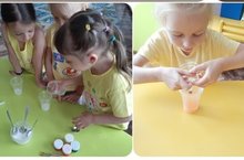Старшая группа 10 продолжает цикл опытов с водой и красками.