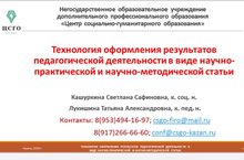 Сегодня педагоги нашего детского приняли участие в вебинаре «Технология оформления результатов педагогической деятельности в виде научно-практической и научно-методической статьи», организованного НОУ ДПО ЦСГО. В рамках вебинара рассматривались вопросы касательно педагогических публикаций, выбора журнала для публикаций, информационных источников, структуры и оформления материала для опубликования. Очень полезную информацию мы получили про электронные ресурсы, которыми мы можем воспользоваться при написании своих статей. Также были даны полезные советы по подготовке своего материала. Очень профессионально был анализирован каждый пункт содержания научно-практической и научно-методической статьи. Ведущие вебинара уделяли особое внимание таким качественным признакам статей, как стиль и оригинальность текста.