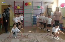 В ДОУ состоялось музыкально-спортивное мероприятие "Будущие защитники Отечества". Дети читали стихи про войну, пели песни. Играли в эстафетные игры. Конечно, в соревнованиях не было победителей и побеждённых. Как говорят дошкольники: «Победила дружба!». Педагоги рассказали детям о значимости Дня Победы!