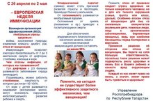 По инициативе Всемирной организации Здравоохранения в Европе, в том числе в Российской Федерации и Республике Татарстан в период с 26 апреля по 2 мая 2021 года, проводиться "Европейская неделя иммунизации" ПОМНИТЕ, НА СЕГОДНЯ НЕ СУЩЕСТВУЕТ БОЛЕЕ ЭФФЕКТНОГО ЗАЩИТНОГО МЕХАНИЗМА, ЧЕМ ВАКЦИНАЦИЯ!
