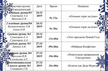 График проведения Новогодних утренников 17.12.2019