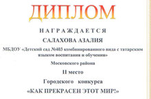 Салахова Азалия стала победителем в открытой олимпиаде на татарском языке для дошкольников "Шәкерт". Руководитель: Гарипова Лилия Талгатовна.