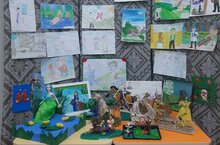 В преддверии дня рождения Г.Тукая, у нас организованна выставка творческих работ по произведениям татарского писателя.