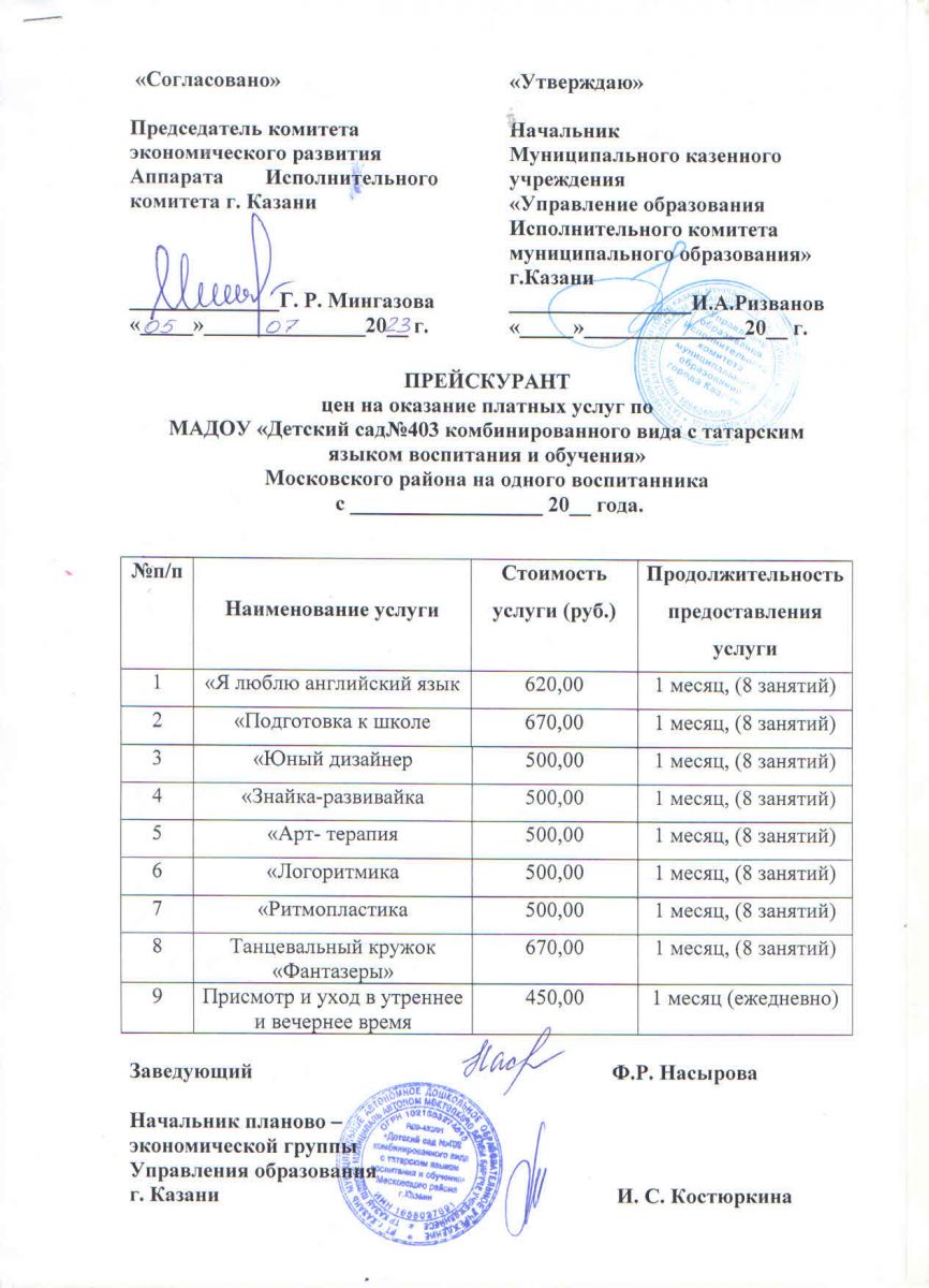 прейскурант цен на оказание дополнительных образовательных услуг.doc