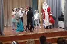 26 декабря для учащихся 1-4 классов был организован интерактив вокруг ёлки с Дед Морозом и Снегурочкой. А также участники театрального кружка "Зазеркалье" представили спектакль "Ночь перед Рождеством".