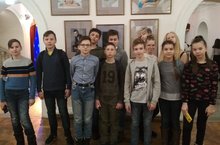 Ученики 6-7 классов на открытии выставки работ воспитанников детской художественной школы №3 им. Б. Альменова "Волшебство на кончиках кисти".