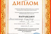 Ученица 8Г класса Вылегжанина Елизавета ,учитель Зарипова А.М. ,заняла I место на IX городском научно-исследовательской конференции школьников имени К.Д.Ушинского