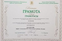 Коллектив гимназии награжден Грамотой Администрации Кировского и Московского районов г. Казани за высокий профессионализм, значительные успехи в организации учебного процесса с использованием дистанционных образовательных технологий.