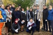 9 октября обучающиеся гимназии вместе с мэром г. Казани И .Р. Метшиным, главой администрации Кировского и Московского района Мироновым С.А. и руководителем компании "Бриз" на уроке "Добра" посадили аллею деревьев в новом сквере "Авиации" во дворе дома по ул.Гагарина 103 и 105.---