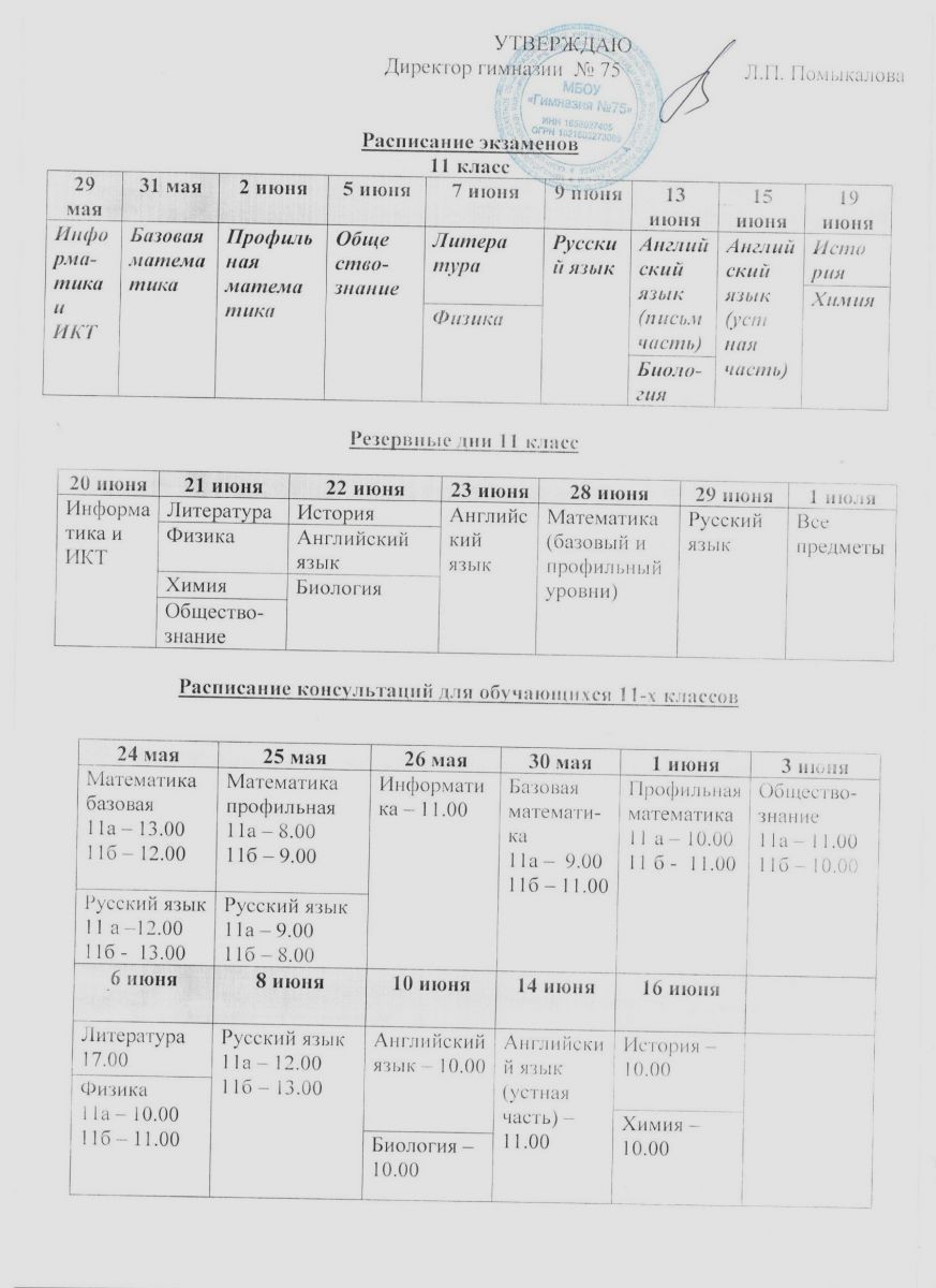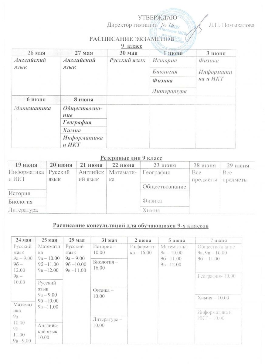 Расписание консультаций и экзаменов
