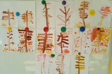 Воспитанники 4 группы выполнили общую творческую работу в виде осенней ????березки.