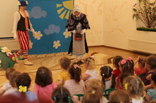 В рамках досуговой деятельности наши детишки посмотрели детский интерактивный спектакль "Волшебные уши". Ребята активно участвовали в действии представления.