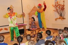 Богата красавица-Осень урожаем! Сегодня в каждой возрастной группе открыта выставка рисунков и поделок, приуроченных к празднованию Дня тыквы в нашей "Золотой рыбке". Ребята познакомились с полезными свойствами тыквы. Праздничный зал встречал всех-всех детишек: сказочно-удивительное театрализованное представление "Золушка" увлекло всех без исключения. Во-первых, потому что было волшебное превращение тыквы в прекрасную карету для Золушки, во-вторых, потому что актерами были наши воспитатели и педагоги, в-третьих, потому что сюжет сказки был преподнесен ребятам дошкольного возраста на английском языке! Чудо! Восторг!