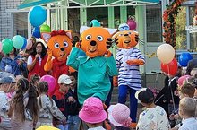 Сегодня торжественно и радостно встречает вас "Золотая рыбка", пригласив в гости мультгероев "Трёх котов" и "Барбоскиных". Разноцвеные шарики, музыка, спектакль, поздравление и игры на Линейке открытия учебного года и катание на весёлом паровозике - всё это подготовлено в честь Дня Знаний для наших дошкольников))