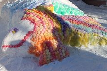 Согласно плану работы МАДОУ на февраль месяц проведён смотр-конкурс зимних участков. Территорию нашего детского сада украсила самая настоящая снежная разноцветная "Золотая рыбка".