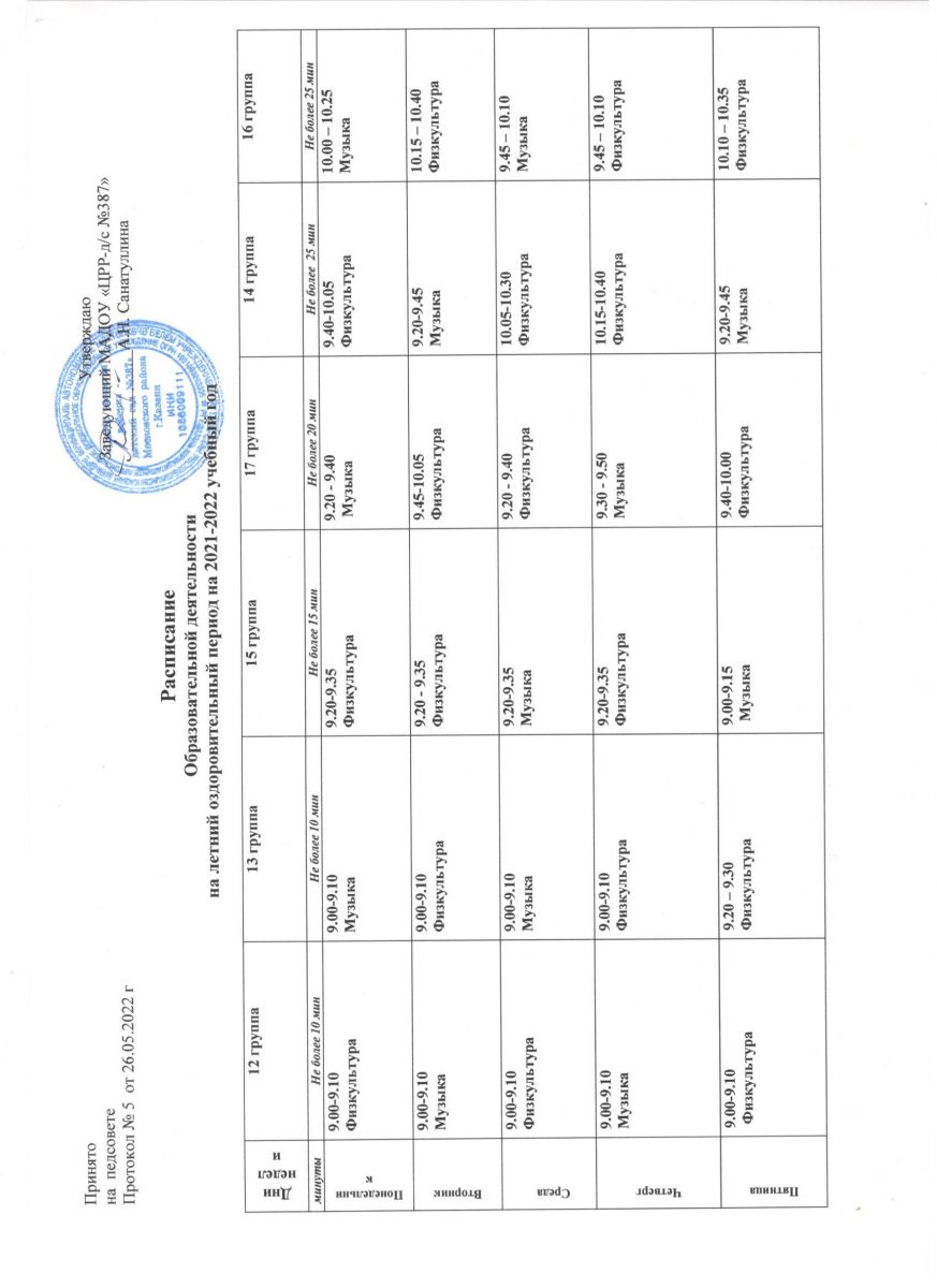 Расписание образовательной деятельности на летний оздоровительный период