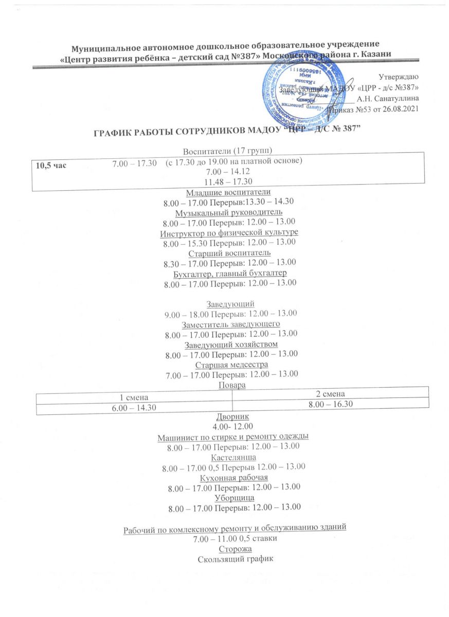 График работы сотрудников МАДОУ
