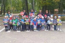 Наши воспитанники старших и подготовительной групп в сопровождении воспитателей и участкового инспектора ГИБДД вышли на экскурсию к перекрёстку возле остановки "Тасма".