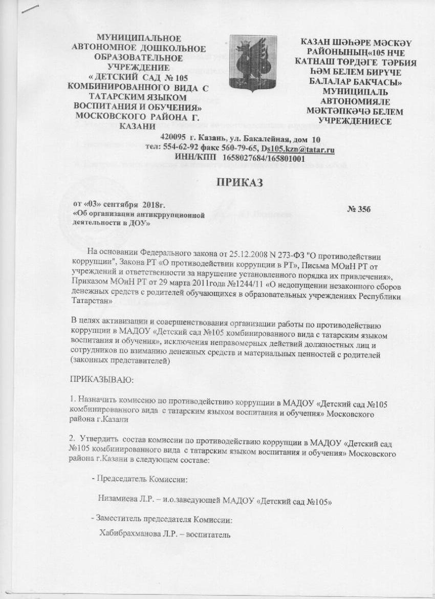 Приказ "Об организации антикоррупционной деятельности в ДОУ"