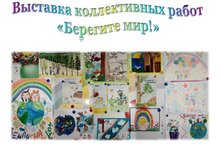 Выставка коллективных работ "Берегите мир!" украсила стенд детского сада. Воспитанники вместе со взрослыми - педагогами и родителями - нарисовали рисунки и изготовили аппликации на экологическую тему.