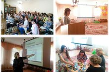 20 апреля в ДОУ прошел семинар-практикум для слушателей переподготовки НОУ ДПО "ЦСГО" и студентов психолого-педагогического факультета ЧУВО "ИГА" на тему "Коррекционная работа учителя-логопеда в контексте ФГОС ДО". Участники семинара познакомились с опытом педагогов нашего детского сада по данному направлению,поучаствовали в практическом занятии по применению новых методов работы.