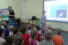 С 17 июля по 21 июля в нашем детском саду тематическая неделя "Космических приключений". С детьми младших групп N1 и N2 воспитатели провели на прогулке познавательные беседы: "Что мы знаем о космосе?". Малыши играли в подвижную игру "Солнышко и дождик", конструировали ракету из строительного материала. Для детей средней и старшей групп был организован просмотр презентации о космосе. Ребята продемонстрировали свои знания планет солнечной системы, отгадали космические загадки; Золин Игорь прочитал стихотворение о планете Земля. Соревнование между командами юных конструкторов ракет из счетных палочек прошло мирно, победила "Дружба".